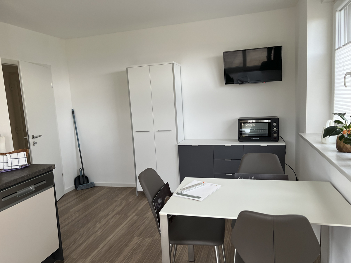 Küchenzeile komplett mit Geschirrspüler, Tisch, 3 Stühle, Kommode, Fernseher